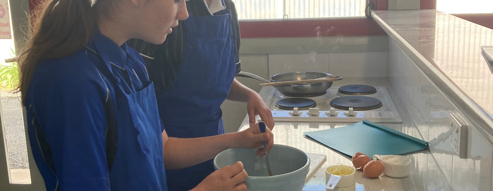 Food class cooking zucchini muffins and Tom's birthday cake